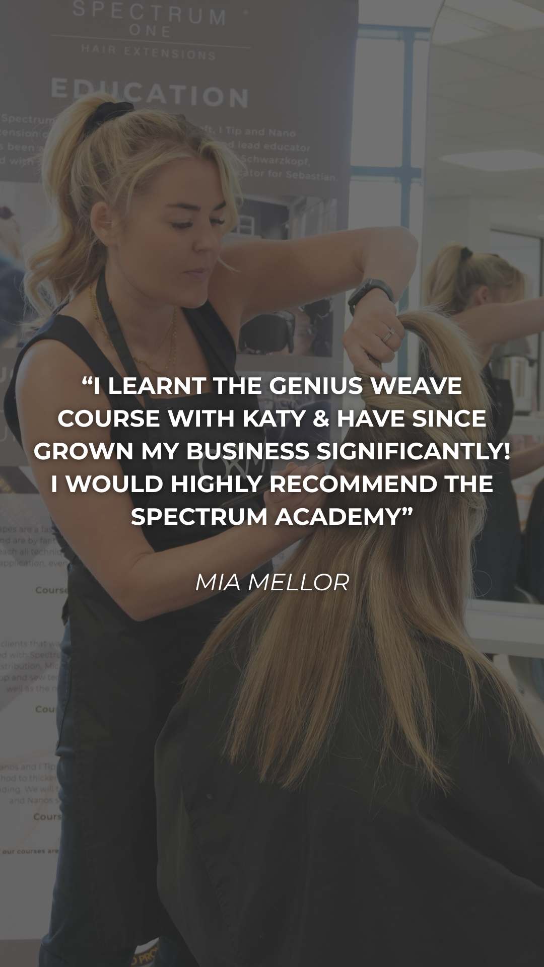 I’m here to help you master the skills, build your confidence and grow your business by offering one, or all three of our professional hair extension methods into your hair services. I can’t wait to support you as you elevate your career to the next level.